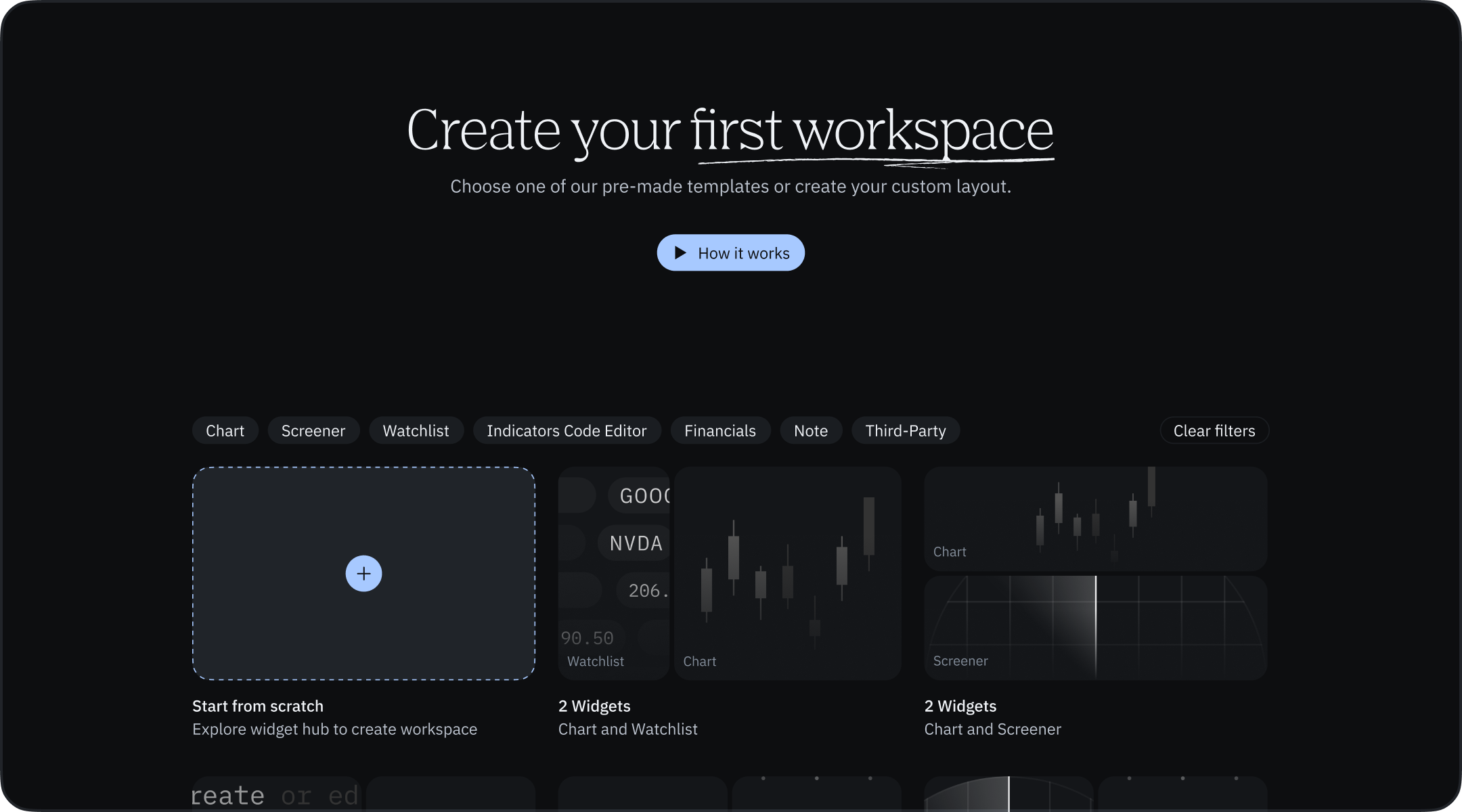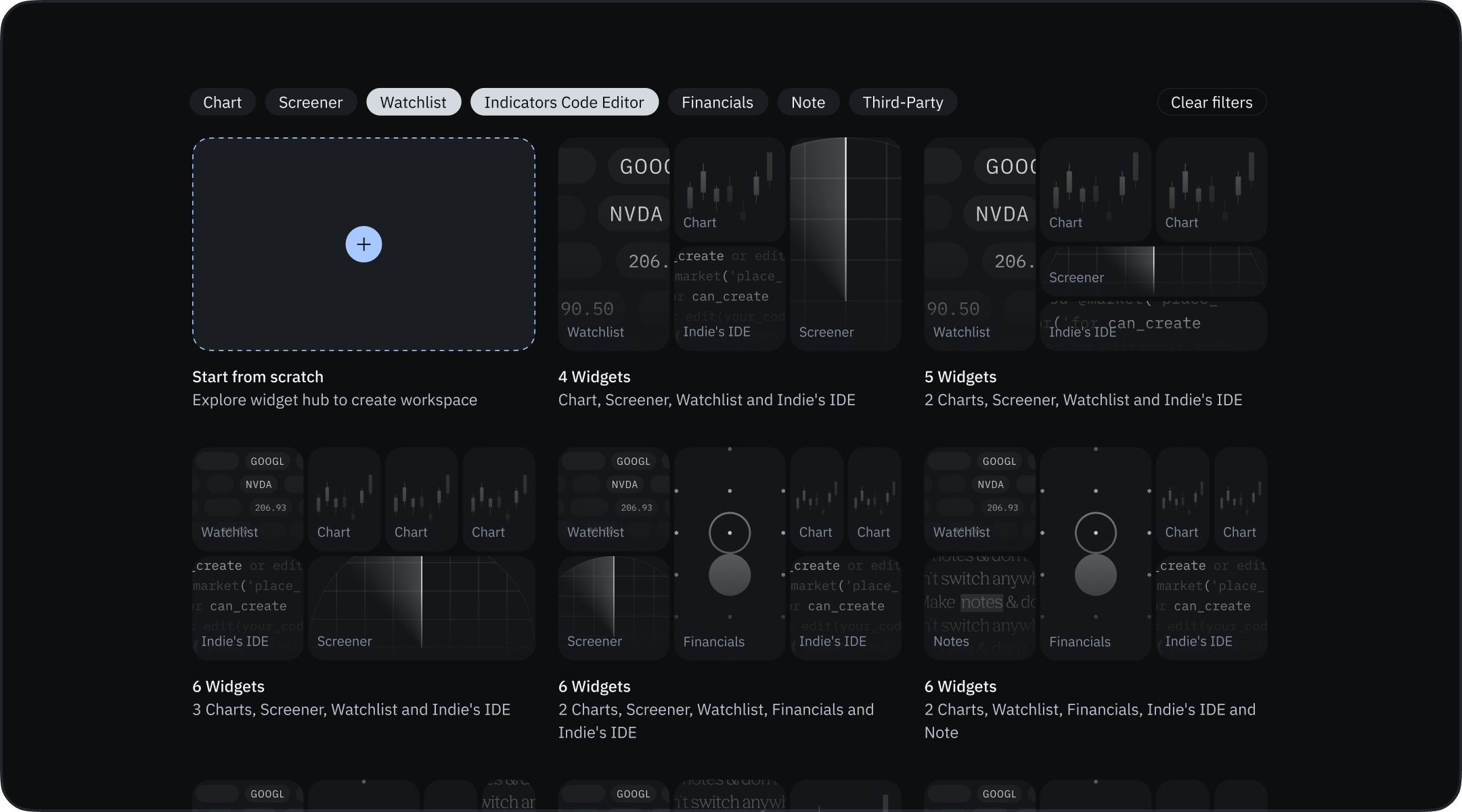 - Find Your Style: Use filters (Chart, Screener, Watchlist, etc.) to narrow down templates matching your trading preferences