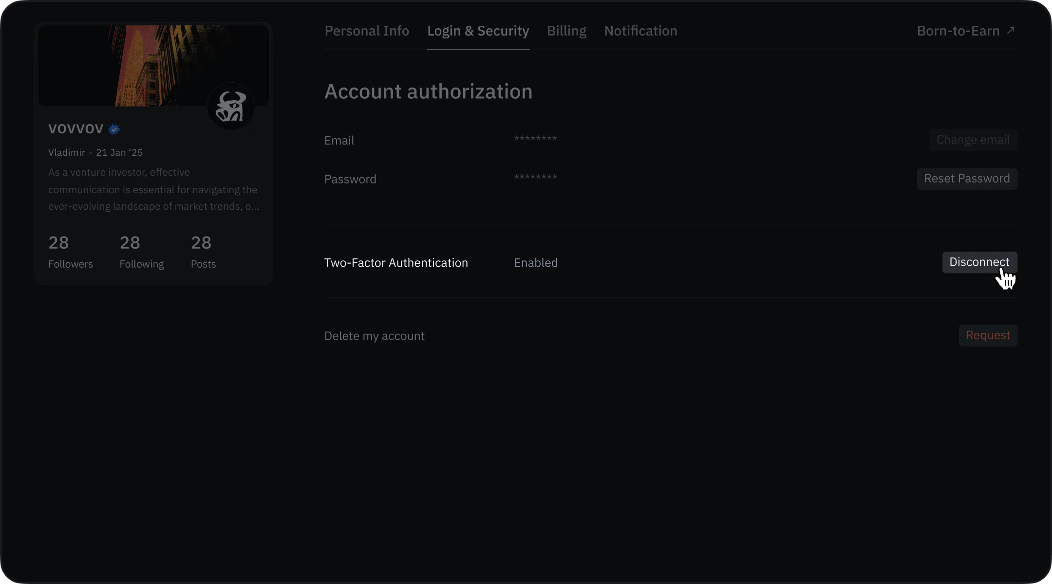 In the 2FA section, select Disconnect.2. Confirm removal