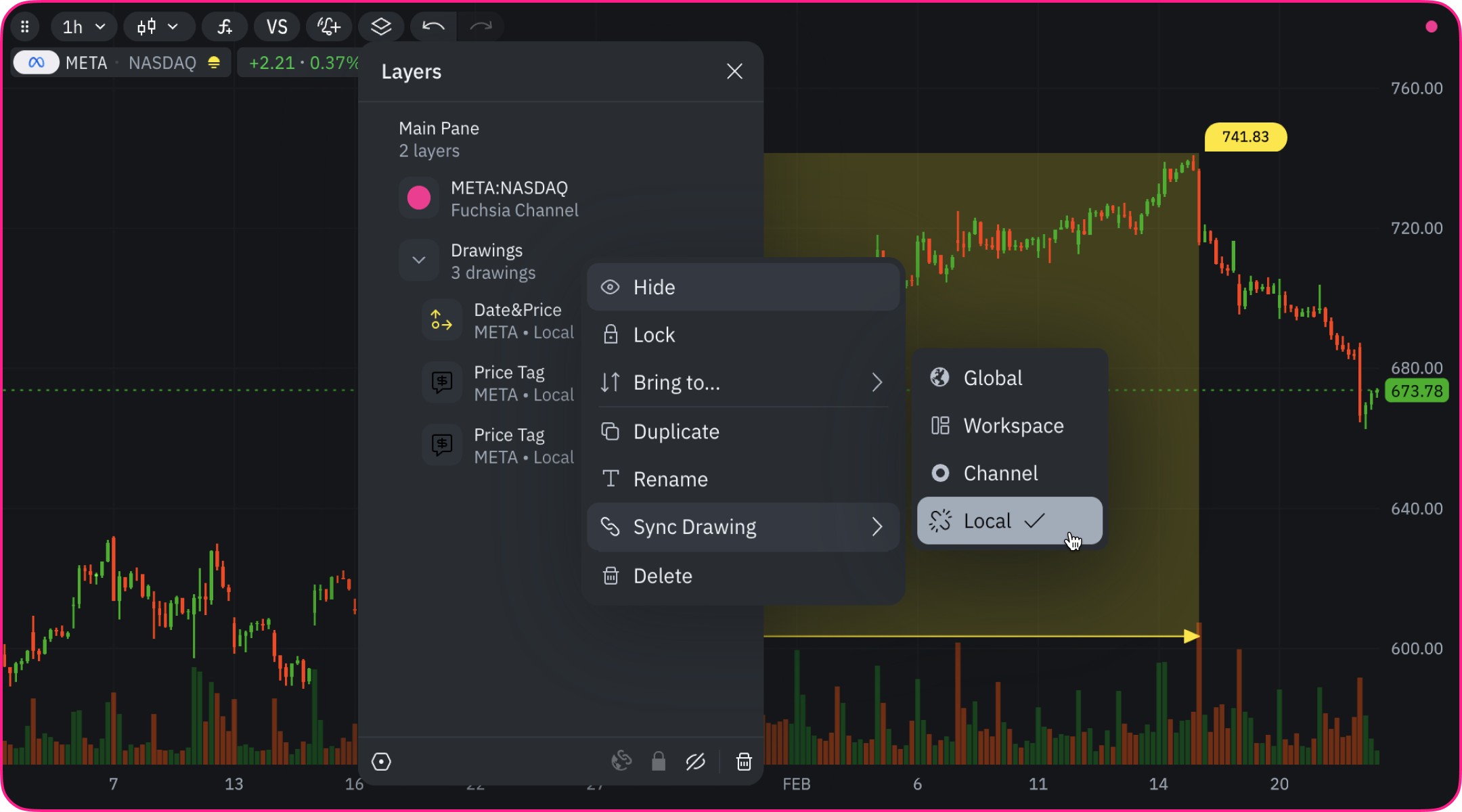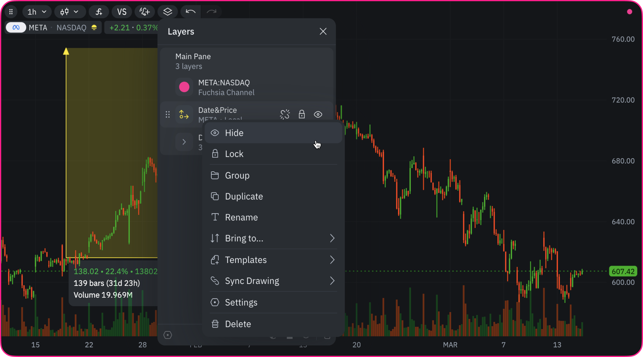 Click the “Layers” icon on your chart to open the Object Tree panel.Key Features