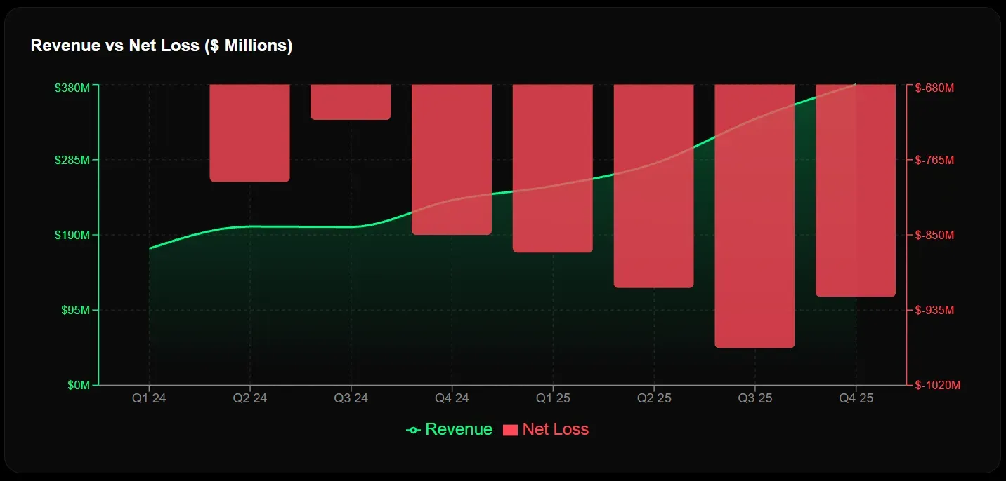 1. Cash Burn Crisis: At nearly $1 billion per quarter, the math is unforgiving. Even with $5.5B in liquidity, that's roughly 5-6 quarters of runway without additional capital raises.