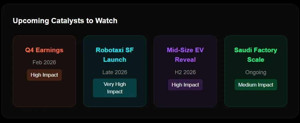 5. Execution Risk: The robotaxi program with Uber/Nuro is ambitious but unproven. Regulatory hurdles, technical challenges, and deployment delays could derail the timeline.