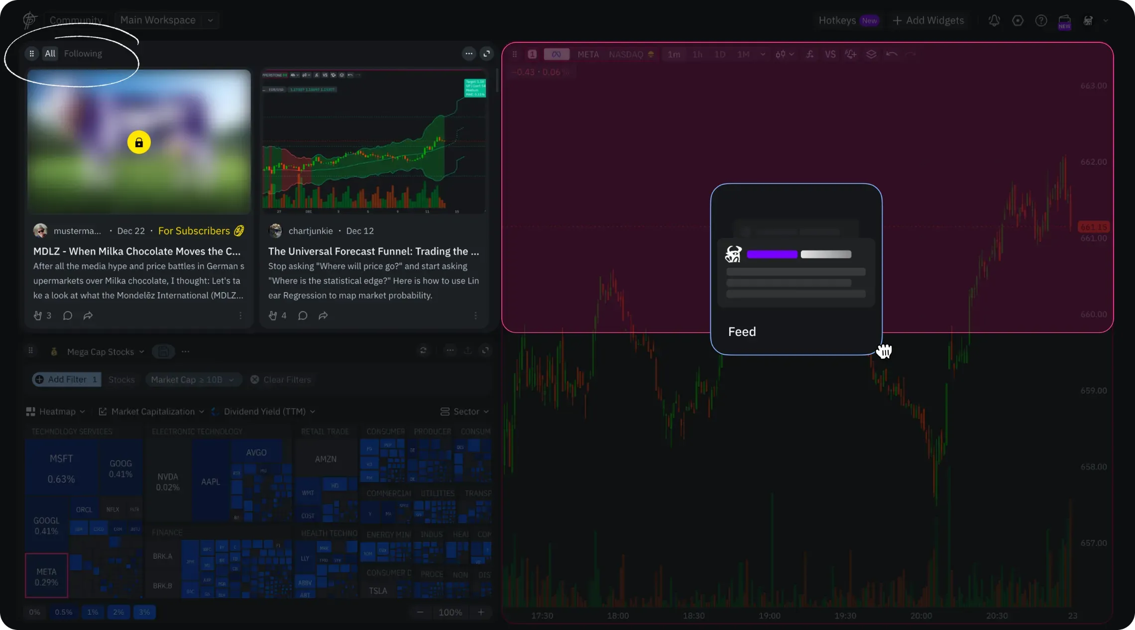 The new Feed widget brings community content directly into your workspace. It allows you to browse posts, read summaries, and stay up to date with what’s happening in the TakeProfit community without leaving your charts.