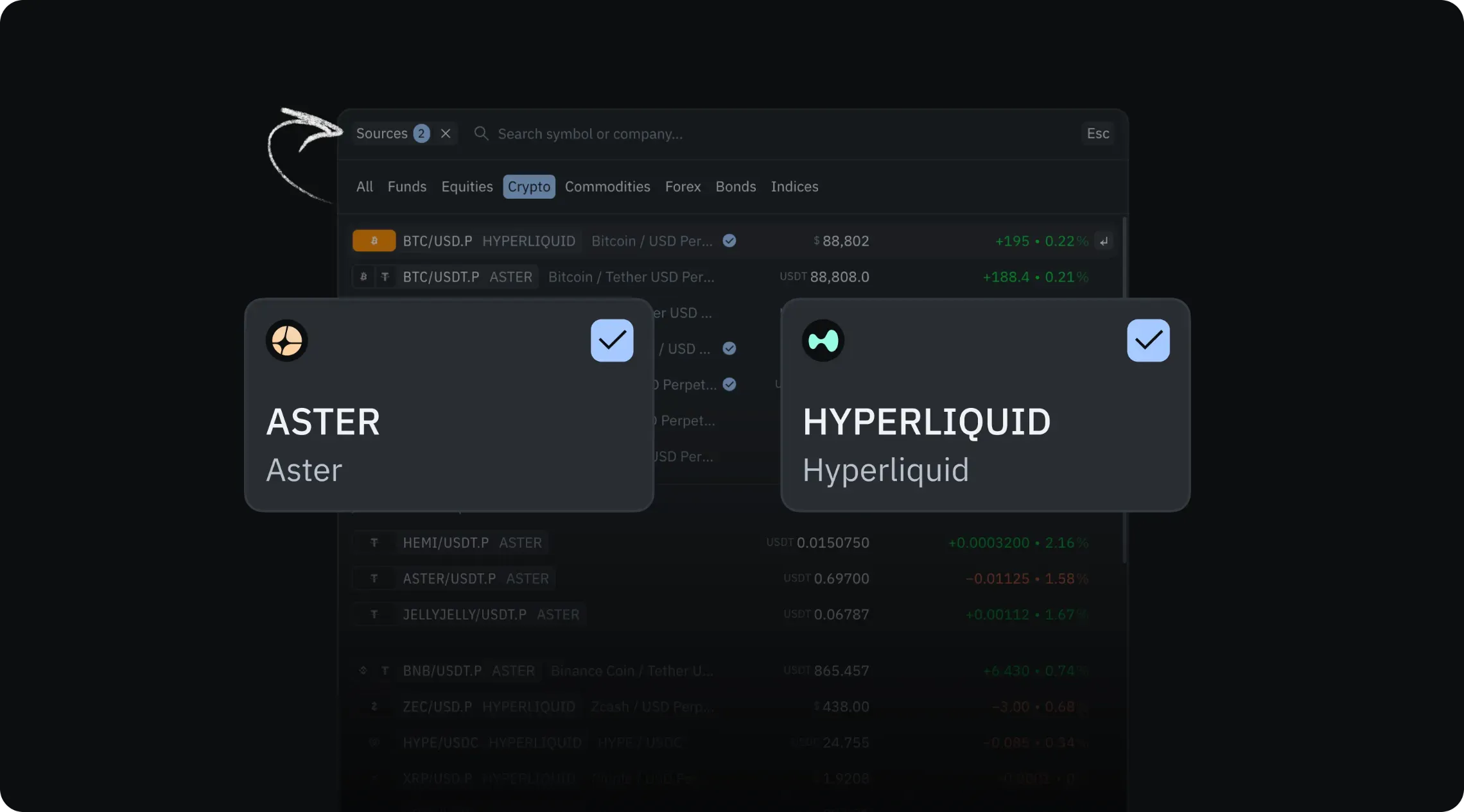 December closes the year with a set of platform updates focused on data sources, workflow efficiency, and automation. This release introduces new decentralized exchange (DEX) market feeds, expanded widget linking, alert-based trading automation, a new community Feed widget, and several Indie® and indicator improvements.