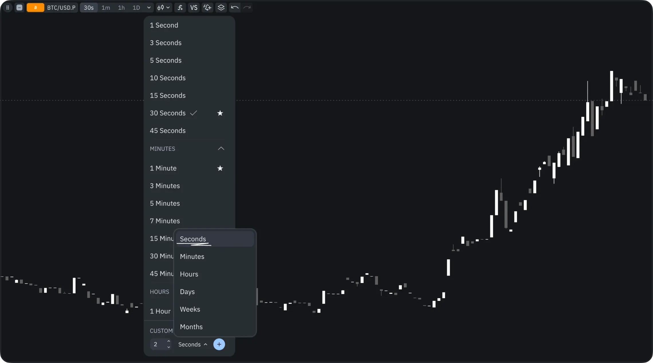 Second-based timeframes are now available on all charts - including custom second intervals - and are completely free.