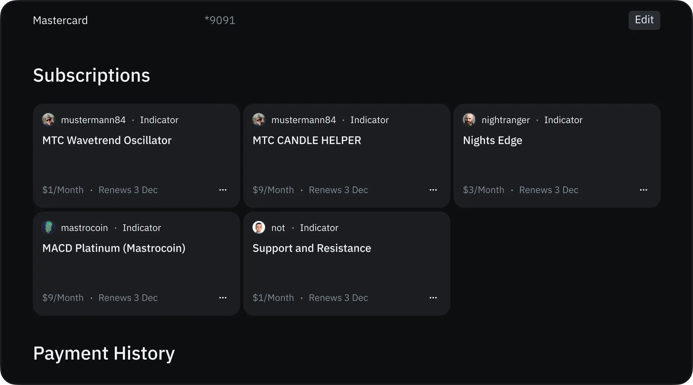 Profile settings now bring everything together in one place. Lock in your username, reset passwords, manage your indicator subscriptions, and adjust email notifications without jumping between different sections.
